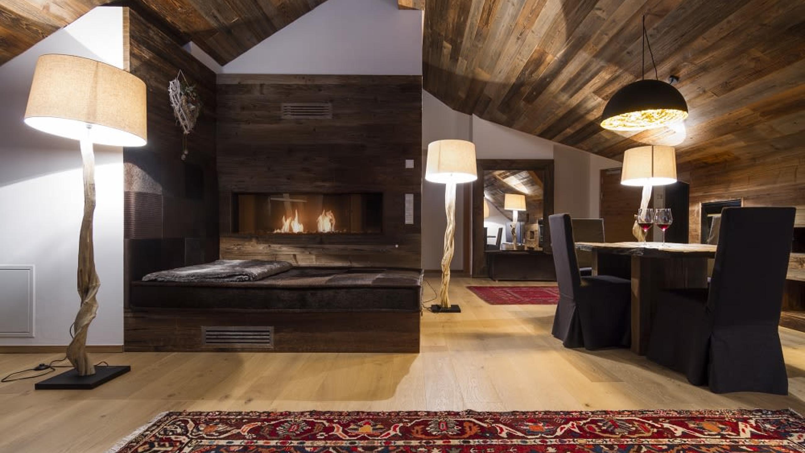 Im Hotel Col Alto wissen wir, wie wir Sie verwöhnen können. Wählen Sie die Suite Panorama und Sie werden sicher nicht enttäuscht sein. Mit einer Größe von 100 m² bietet die Suite allen Komfort, inklusive einem privaten Kamin und einem Jacuzzi auf der großen Terrasse mit überwältigender Sicht auf die Dolomiten.